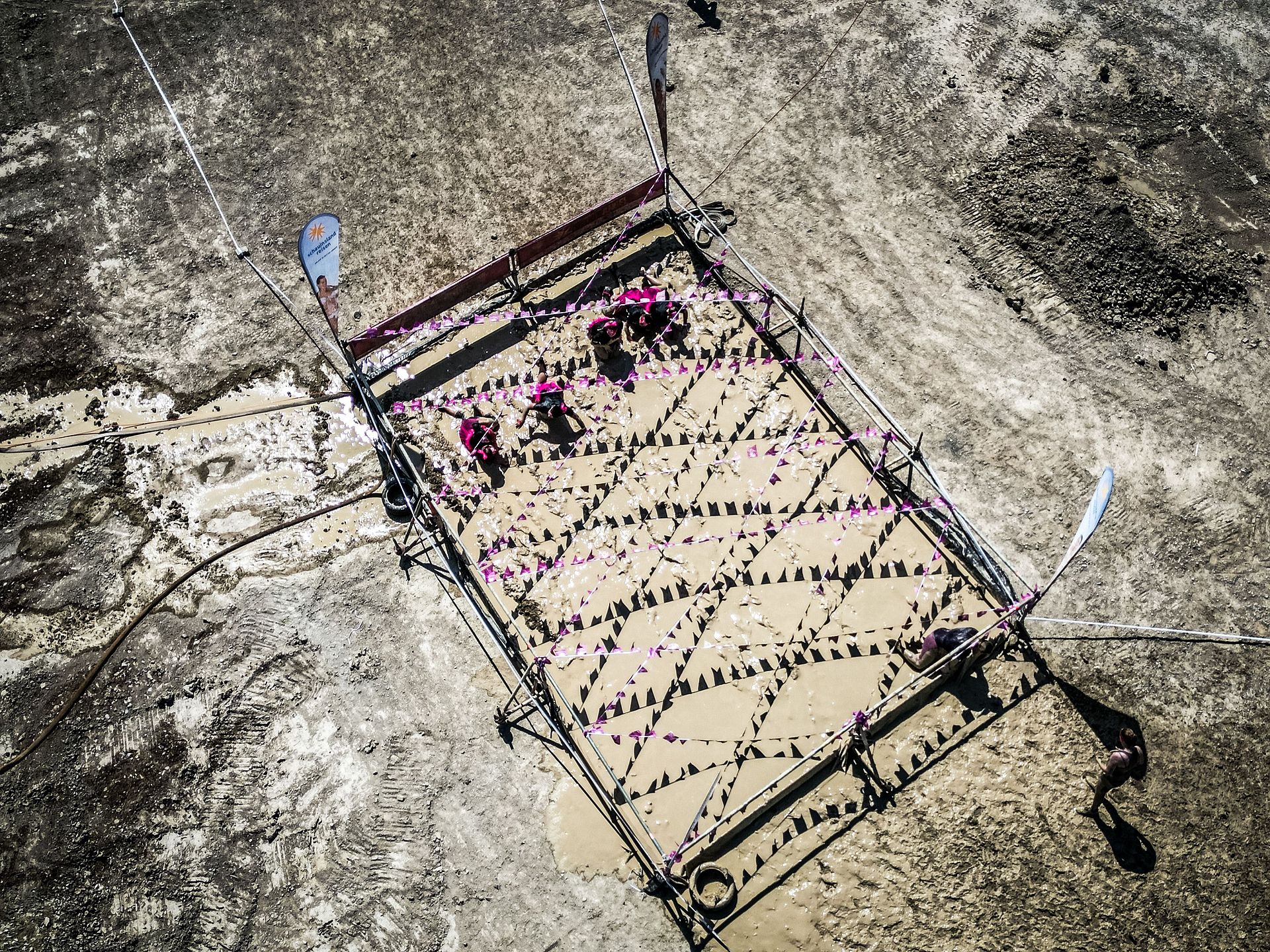 Gemeinsam überwanden Melanie und ich fünf Kilometer voller Hindernisse. Zugegeben, dass ein oder andere Hindernis – wie zum Beispiel die Wasserrutsche in den Baggersee – auch gerne mehrmals. Es hatte schon etwas für sich, als letzte Gruppe zu starten. Denn man konnte sich Zeit lassen, schließlich kam keine weitere Gruppe mehr nach. Außerdem kannten wir die meisten Mitarbeiter durch die Arbeit als Volunteer bereits. Was im großen Schlammbecken zu einer ausschweifenden Schlammschlacht mit zwei der Techniker führte. Gut, unsere freiwilligen Verzögerungen sorgten dafür, dass wir am Ende das letzte Paar waren, das ins Ziel kam, aber das war es wert.